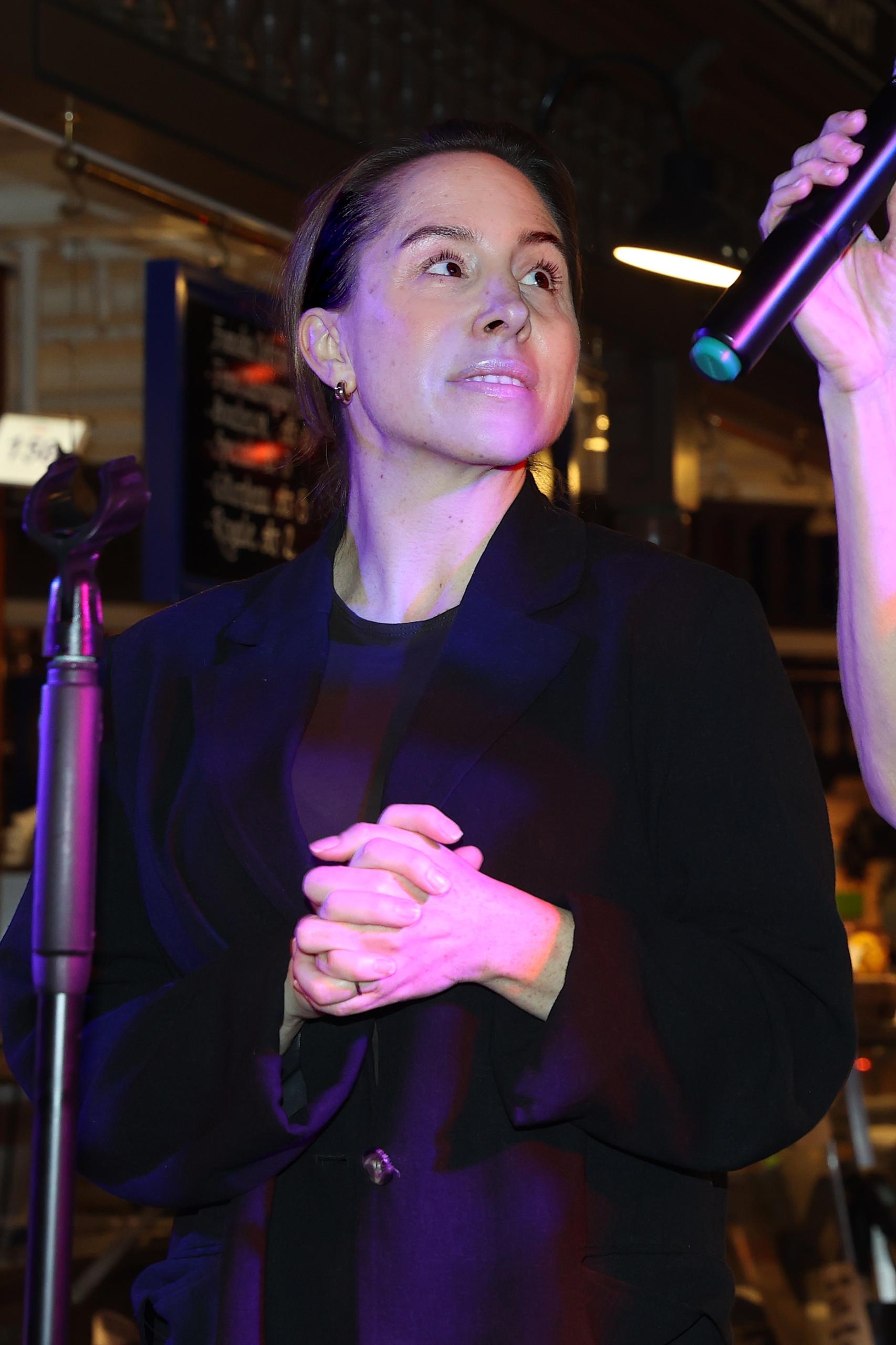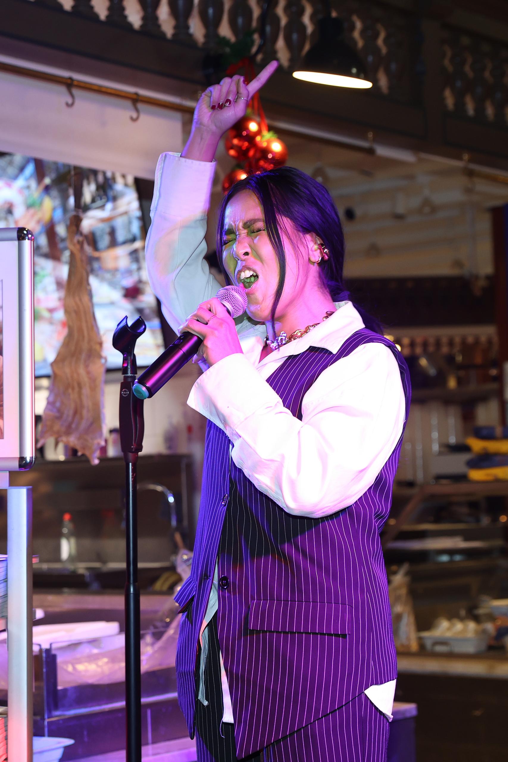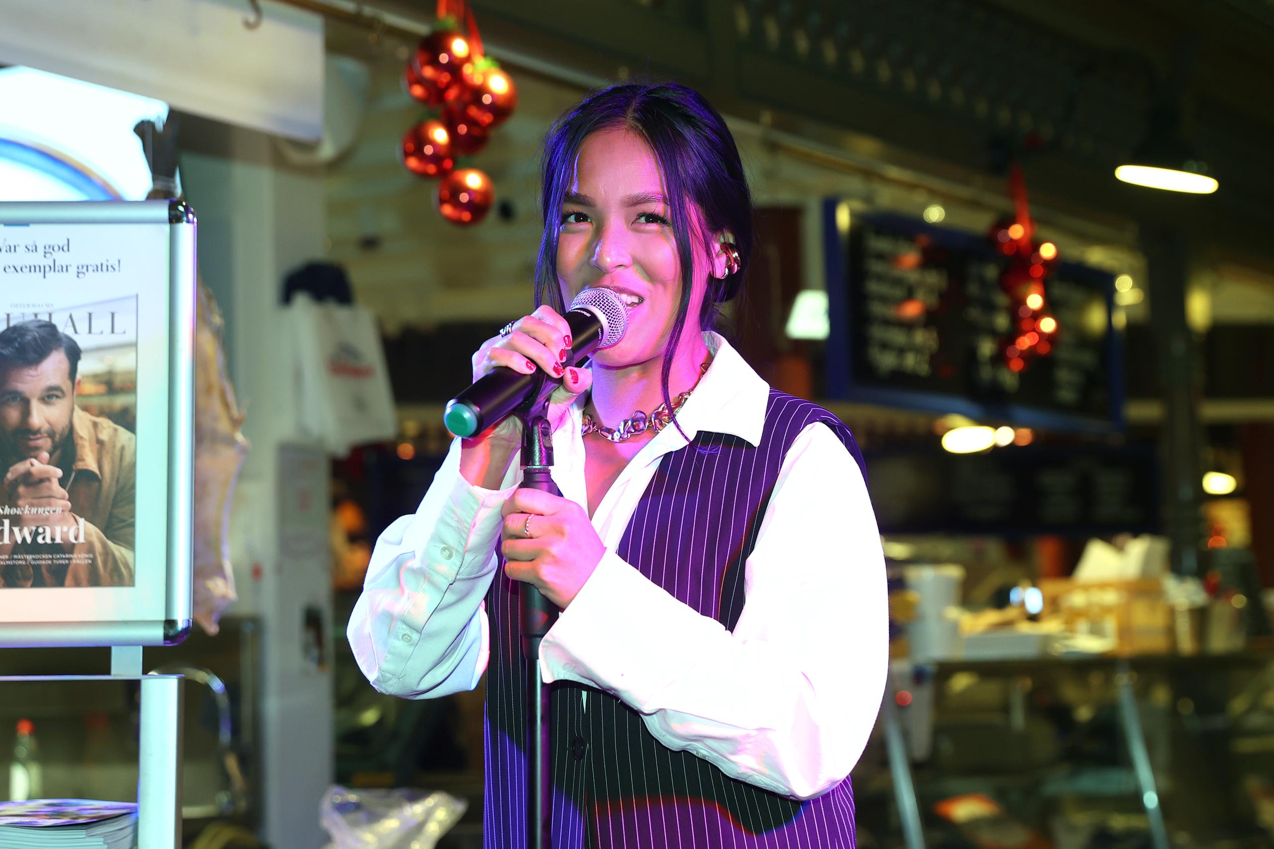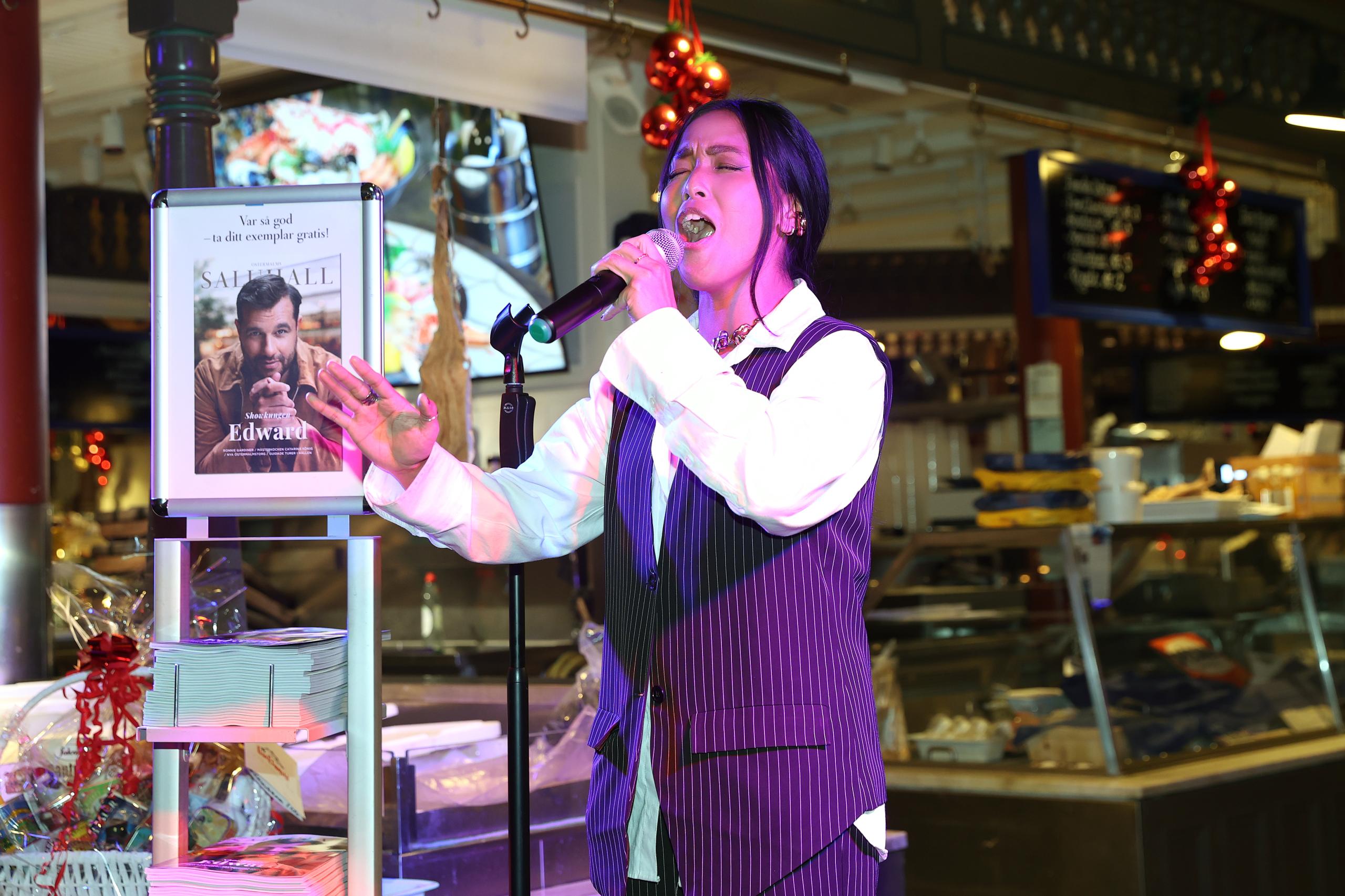 Kvällen inleddes av vår musikaliska värd Charlie King, som satte tonen direkt med sin värme och unika känsla för soul. Och så, mitt i allt, hände det där magiska som inte går att planera: en spontan duett tillsammans med Joanné Nugas i “Ain’t No Mountain High Enough”. Publiken jublade. Joanné, som vi lärt känna i vinternumret och som nu gör succé i huvudrollen i Max Martins musikal & Julia, bjöd även på solonummer ur föreställningen – “Hit Me Baby One More Time” – och en mäktig tolkning av “I Have Nothing” av Whitney Houston, där hon verkligen visade sin kapacitet. Hennes röst fyllde rummet hela vägen upp till saluhallens 21 meter höga tak. Det är svårt att förstå hur så mycket kraft kan rymmas i en så liten kropp, som en modern Pocahontas med stjärnstoft i stämbanden.